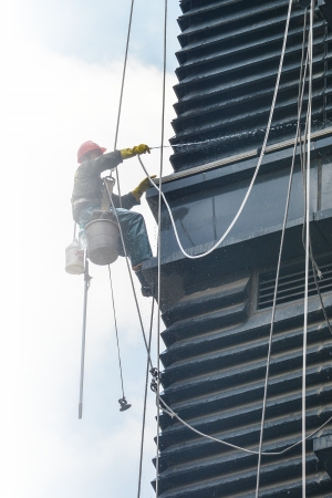 高空作業(yè)安全繩保護(hù)烈日下作業(yè)的“蜘蛛人”