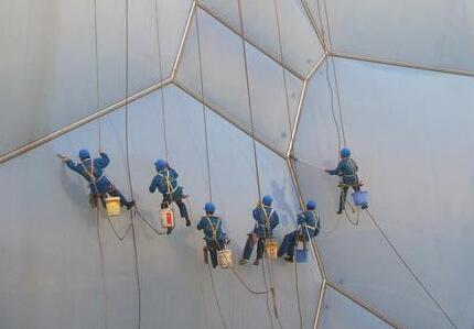 每年到五一假期和旅游旺季時,清潔工人都會對水立方的外觀進行清潔作業,使得水立方以亮麗整潔的面孔迎接游客。為了確保清潔工人安全作業,作業前工人都必須按照要求加載安全保護裝置,例如防墜器、安全帶、安全繩等設備,以免在作業過程中發生安全事故,確保工人能夠順利的完成清潔作業。