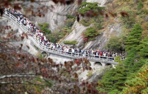 國(guó)慶假期期間黃山景區(qū)游客日均超過(guò)3萬(wàn)人,景區(qū)內(nèi)各循環(huán)道全部開啟,合理調(diào)整人流,保證游客安全。
