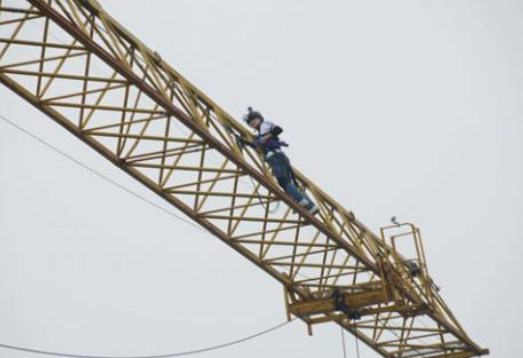 第一種:上攀和下爬塔吊時使用鋼絲繩作為垂直生命線。