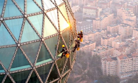 “飛檐走壁”穿梭于高樓大廈之間,幾十米甚至上百米。可能你覺著如此驚現(xiàn)刺激的場面只有在好萊塢大片里才能一飽眼福。但是在我們生活的世界,處處都有這樣的人存在。為了清洗高樓外墻,他們就像電影里的“蜘蛛俠”一樣,作業(yè)場面令人驚心動魄。