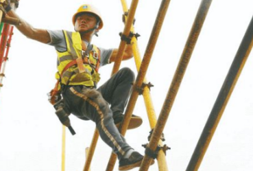 不要小看身材瘦小的他,一旦站在10多米高的腳手架上,他就像高空“走鋼絲”一樣靈活自如,身上系掛的高空作業安全帶隨著他身體的靈活轉動而緊隨其后,絲毫不會影響到他的搭架子工作,雖然將一根又一根長達6米重達45斤重的鋼管接在其他鋼管上面并不是那么容易的事情,但是他心細,年輕肯吃苦,搭起來的架子橫平豎直,又非常牢固。