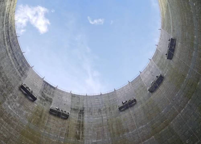 發(fā)電廠(chǎng)的冷卻塔是巨大的鋼結(jié)構(gòu),其主要功能是通過(guò)蒸發(fā)和對(duì)流來(lái)冷卻發(fā)電機(jī)組產(chǎn)生的熱水,從而保障發(fā)電效率并減少熱污染。冷卻塔內(nèi)部長(zhǎng)時(shí)間受到水汽和溫度變化的影響,內(nèi)壁可能會(huì)受損,影響其結(jié)構(gòu)穩(wěn)定性和冷卻效果,因此需要定期進(jìn)行加固和維護(hù)。